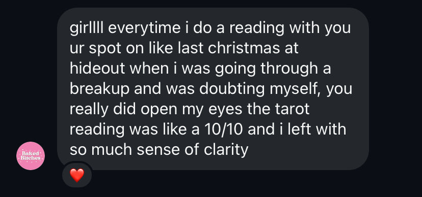 My Tarot reading was so spot on! I highly recommend Daniela if you want to understand things in a deeper, more meaningful way